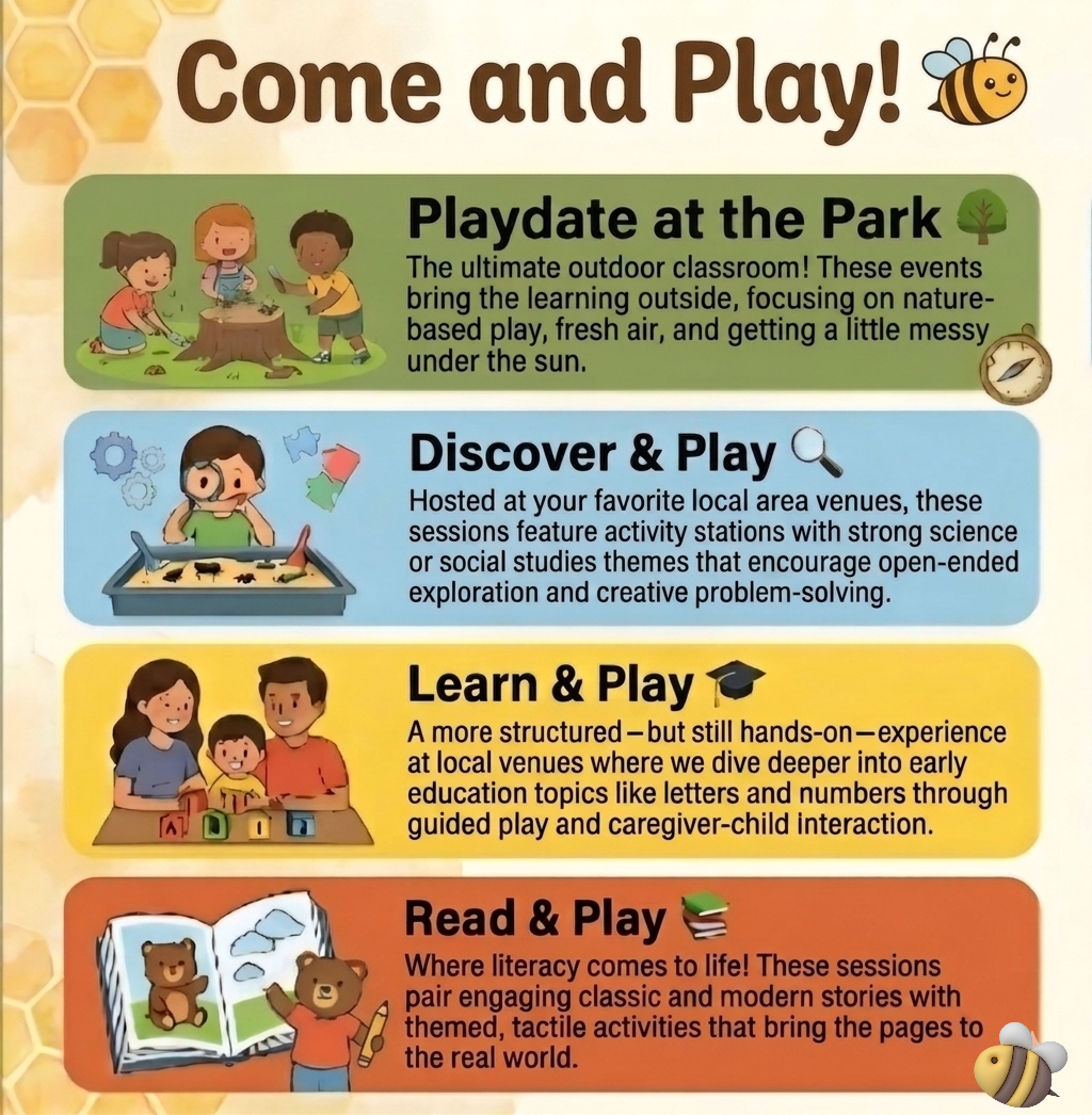 Honey Bee Hollow Kids was born out of heartfelt conversations between Mimi and the families in her care. These parents often shared how difficult it was to find meaningful weekend activities to enjoy with their children. Recognizing this need, Mimi decided to bring the magic of her classroom into the community, creating a mobile classroom where the focus is on sensory-rich activities, play-based learning, and family bonding.