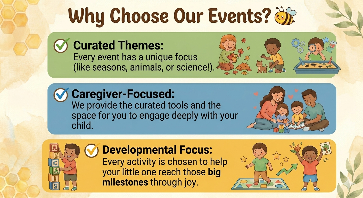 By prioritizing nature themes and a child-led approach, we provide an environment where social development happens naturally. Children learn to navigate their first friendships and build emotional confidence through shared discovery. At Honey Bee Hollow for Kids, we are dedicated to helping parents and children slow down and enjoy the simple, beautiful moments of childhood together.